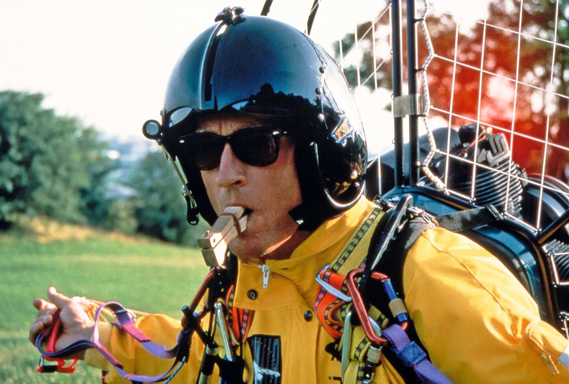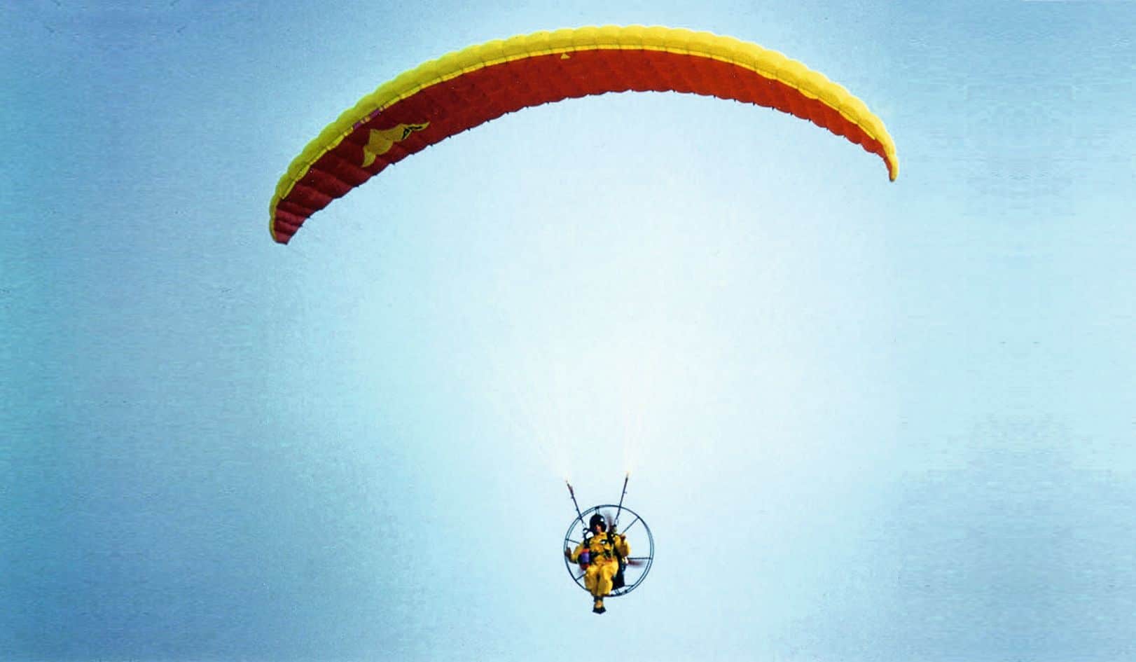 Zusammen mit Erfinder und Konstrukteur Willi Ewig startet Jochen Schweizer im August auf einen Pionierflug durch Deutschland mit dem Motorgleitschirm. Als Erste wollen sie die Route von München nach Berlin fliegen.