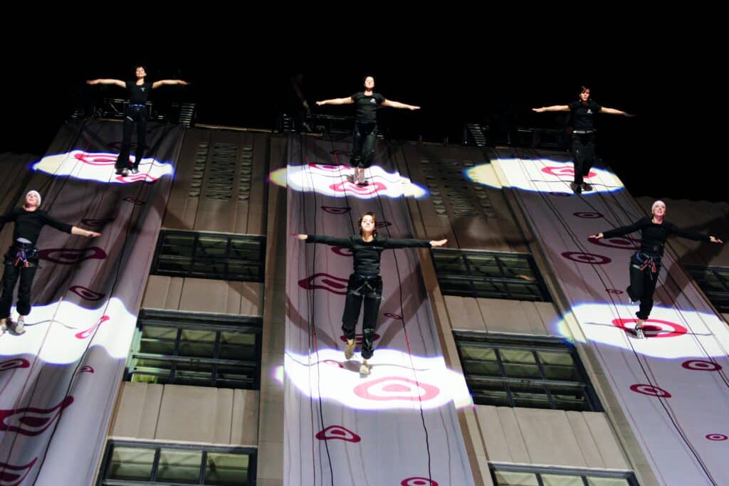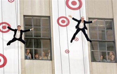 2005 bucht die Modekette Target Jochen Schweizer für seine berühmte vertikale Modenschau – für das Rockefeller Center, 5th Avenue, New York, USA.