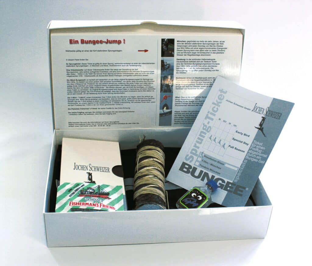 Mit der Bungee-Box entwickelt Jochen Schweizer ein völlig neues Handelsprodukt. Was sonst nur über Gutscheine möglich war, erfährt mit der Bungee-Box ein völlig neues haptisches Schenk-Erlebnis.